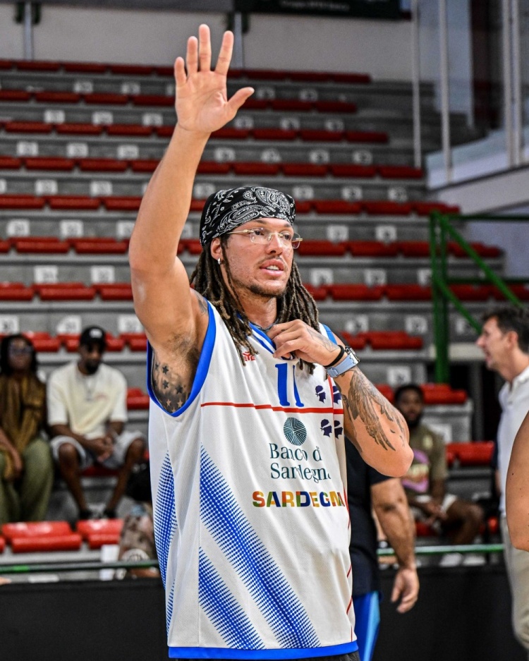 Nuggets Aaron Gordon mặc áo của người anh quá cố Drew Gordon khi tham dự sự kiện ở Sassari, Ý.