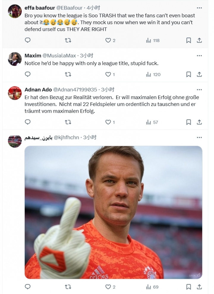 Anh ta tức giận và bị chỉ trích bởi Ren Mi vì không có tham vọng! Chủ tịch Bayern nói rằng mục tiêu của mùa giải là cho đội bóng đá nam và nữ để giành chiến thắng