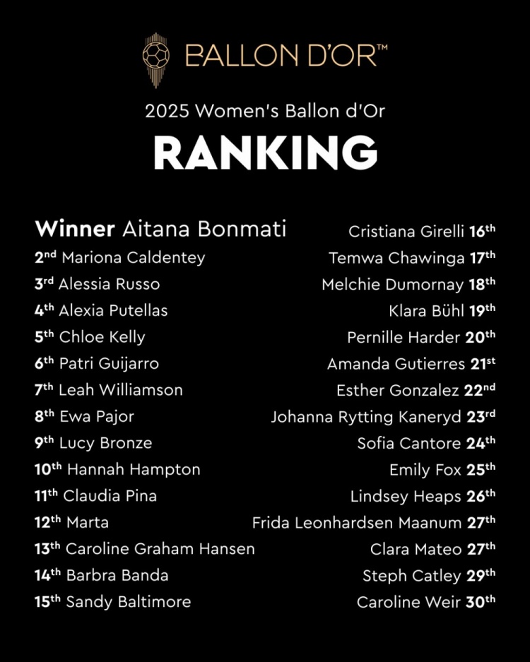 Top 10 giải thưởng bóng vàng bóng đá nữ Top năm 2025: